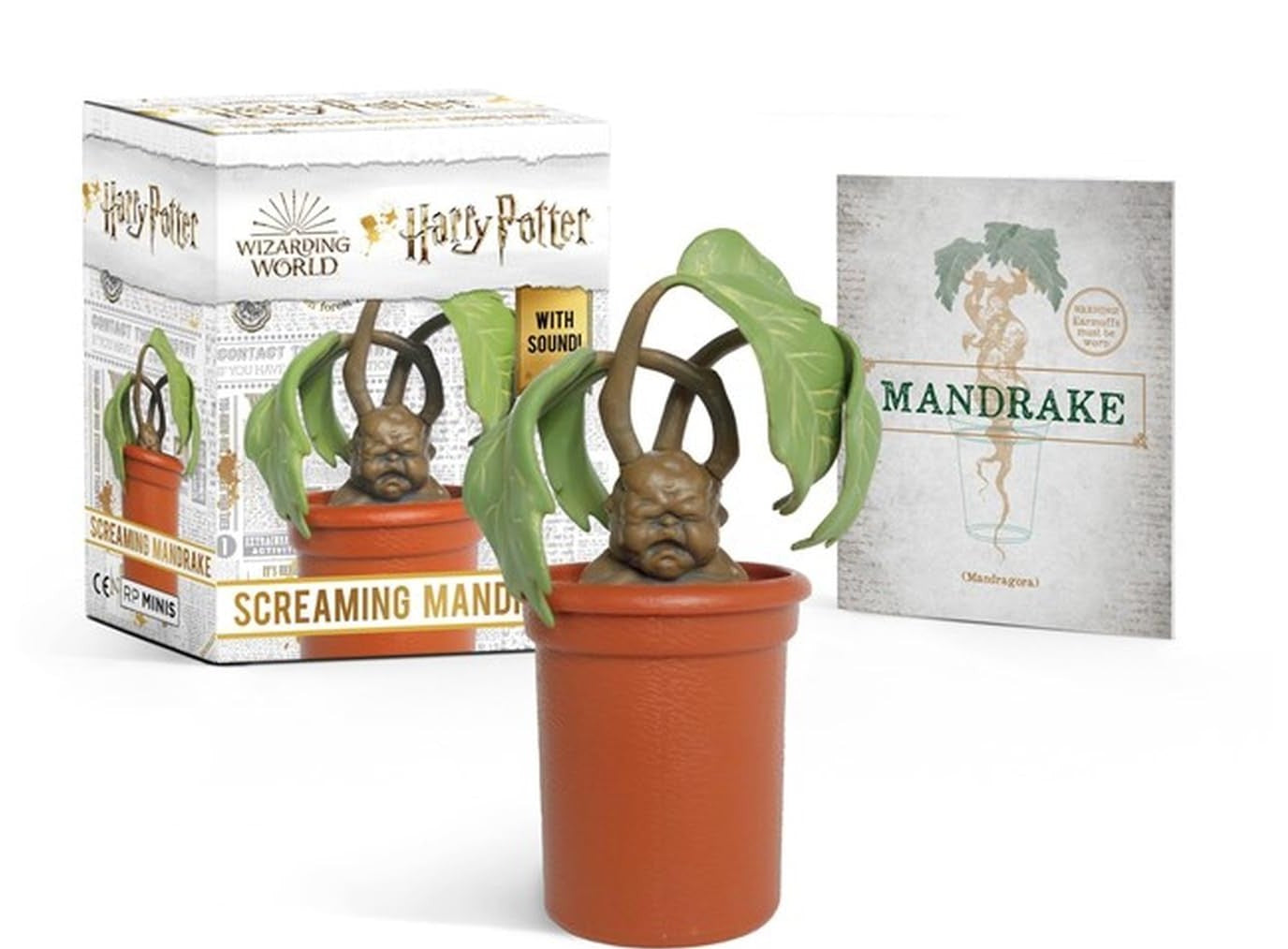 An officially licensed collectible replica of the unforgettable mandrake root from Hogwarts School of Witchcraft and Wizardry's herbology class. Complete with sound of the plant's cry, this is a perfect gift for fans of the Wizarding World. Specifications: Mini replica of the mandrake potted plant; Plays audio of mandrake cry when pulled up from the pot; Measures 3 inches Authentic Audio: Includes mandrake cry as heard in Harry Potter and the Chamber of Secrets Identification Card Included: An illustrated description card provides essential information on the mandrake Perfect Gift: A unique gift for fans of the wizarding world Officially Licensed: Authentic collectible