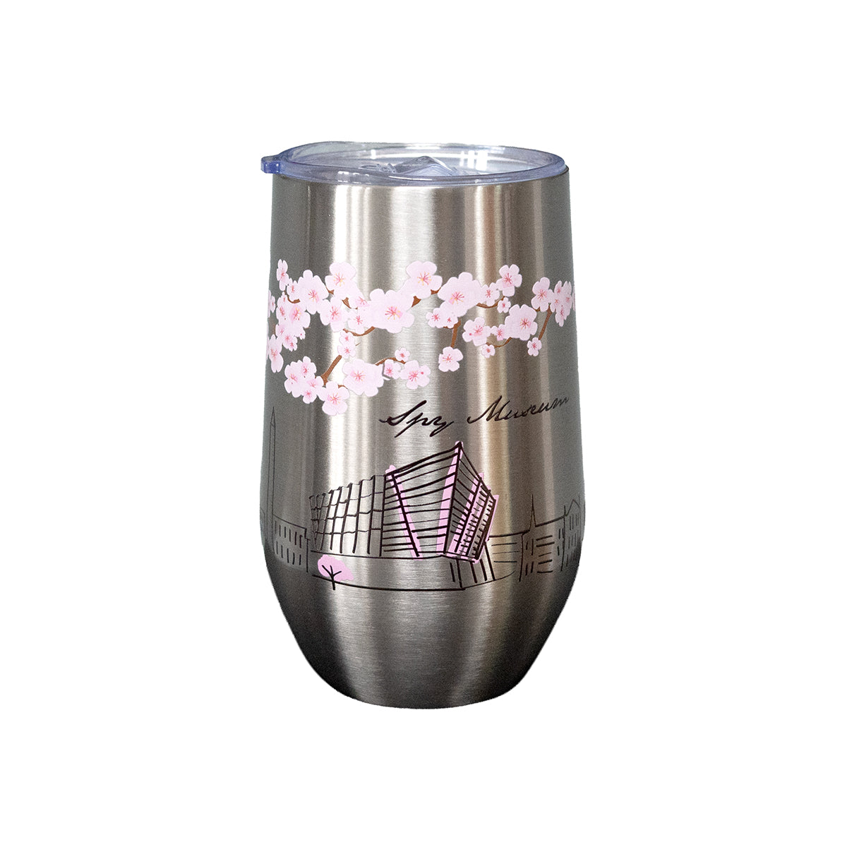 Sip in style with this sleek 18 oz stainless steel tumbler featuring a cherry blossom design wrapped around the iconic Washington, DC skyline. Built to keep drinks hot or cold for hours, it includes a clear, easy-sip lid for convenient, spill-resistant use. Perfect for your daily commute, museum visits, or enjoying the beauty of DC wherever you go.