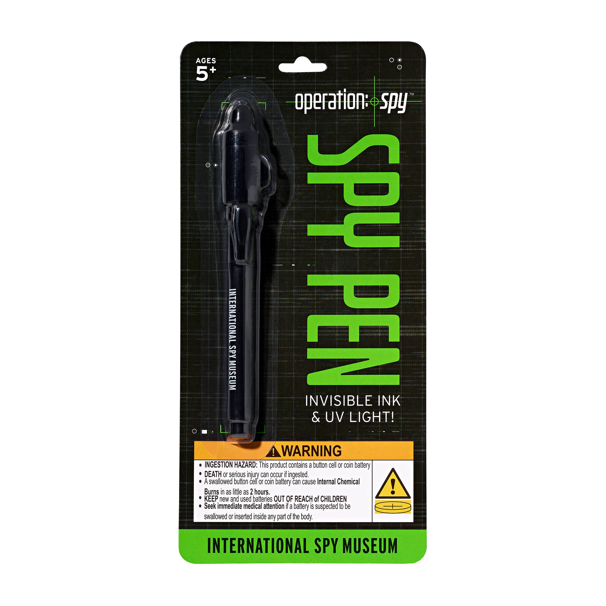 Now you see it, now you don't! Your adversaries can't break your code when your writing is invisible! Communicate without leaving a trace—that is, until your agent utilizes this slick pens UV light and sees the message written in invisible ink suddenly illuminated. The pen and UV light are disguised as a flashlight to ensure your communication remains top secret. A Spy Museum Exclusive!