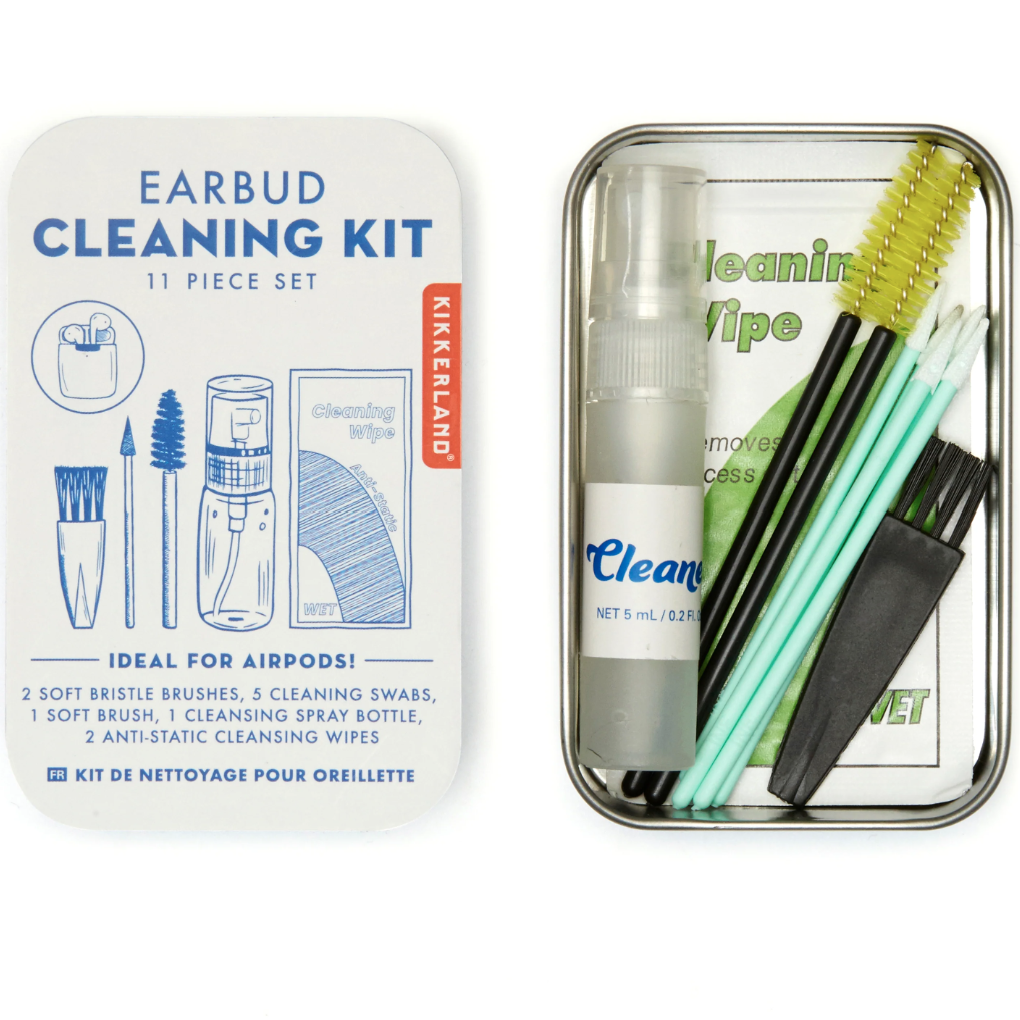 The best way to keep your earbuds clean and long lasting! This stylish tin comes with the all the required tools for ensuring your listening experience is optimized and dirt free: two soft bristle brushes, 5 cleaning swabs, 1 soft brush, 1 cleansing spray bottle, & 2 antistatic cleansing wipes. Perfect for airpods. Design: KDT Materials: PP, polyester, ionized water, glycerin, propylene, glycol Packaging: tin / CDU Dimensions: 6 x 9,4 x 1,8 cm