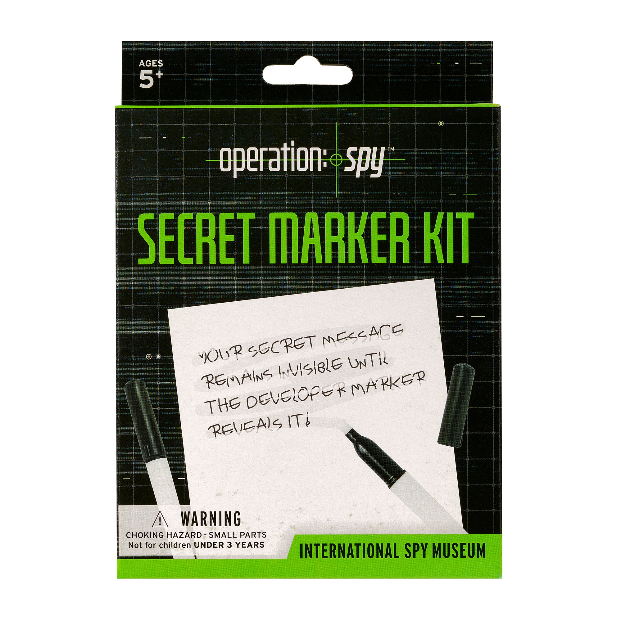 Got the "write" stuff to be a spy? Now you can send for-your-eyes-only messages to friends and other agents with this secret marker kit! It will be invisible until it is scribbled over with the special developer marker, revealing the message as if by magic! A Spy Museum Exclusive!