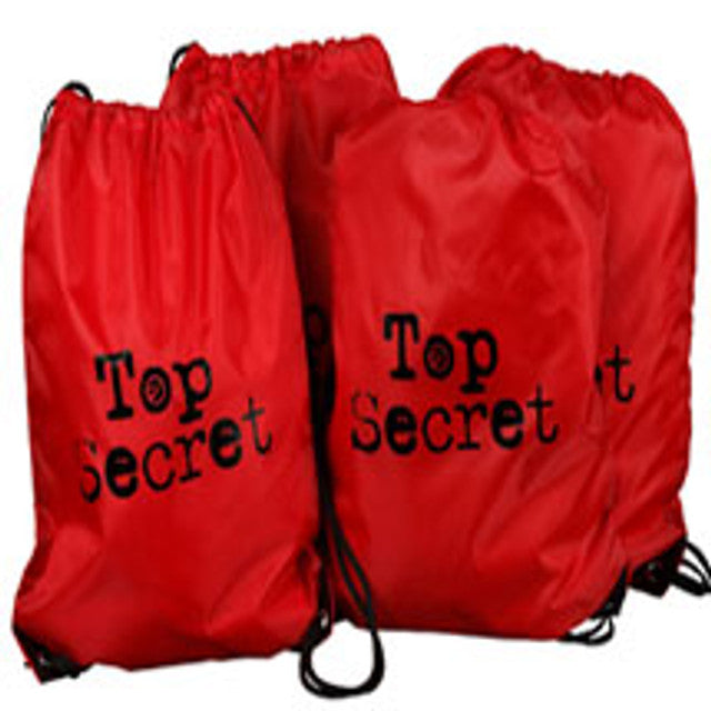 Spies live for the suspense and these extra-large goodie bags will keep 'em guessing as to what's inside! Adding an air of mystery to any spy-themed party, these drawstring tote bags are also fun to take to school, the beach, or shopping. Top Secret graphic design contains the Spy Museum logo. A Spy Museum Exclusive!
