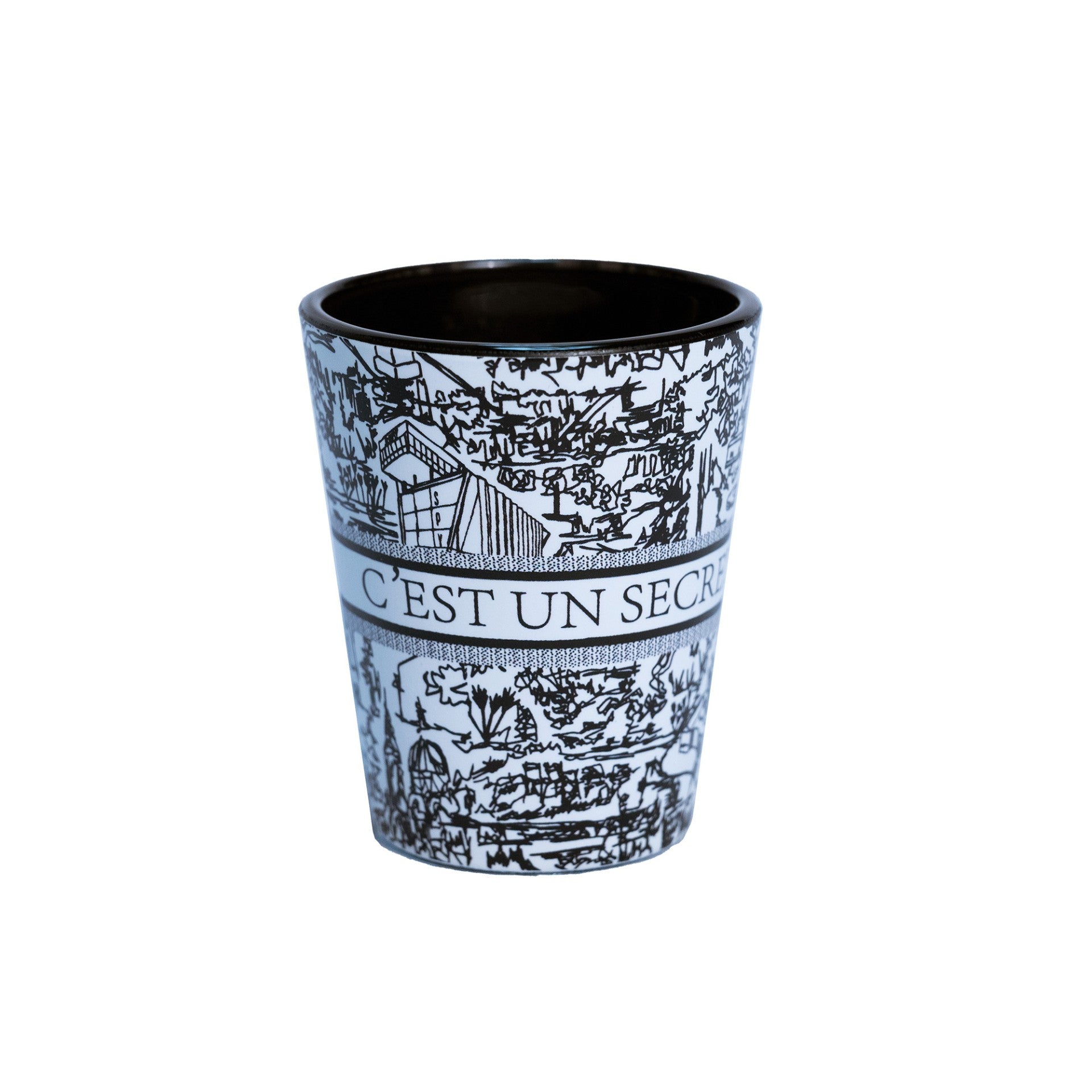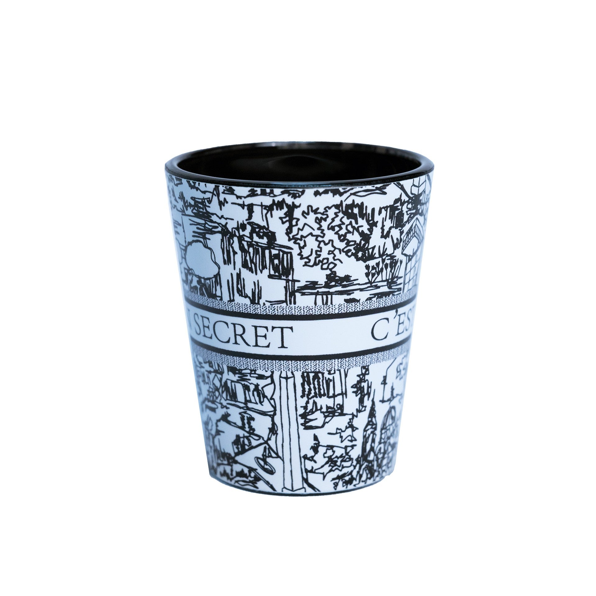 Raise a covert toast with the C'est un Secret shot glass, featuring a designer-inspired DC skyline pattern that is sleek, stylish, and secretive.